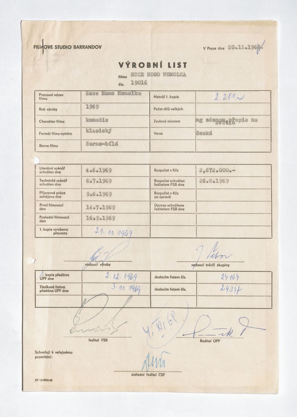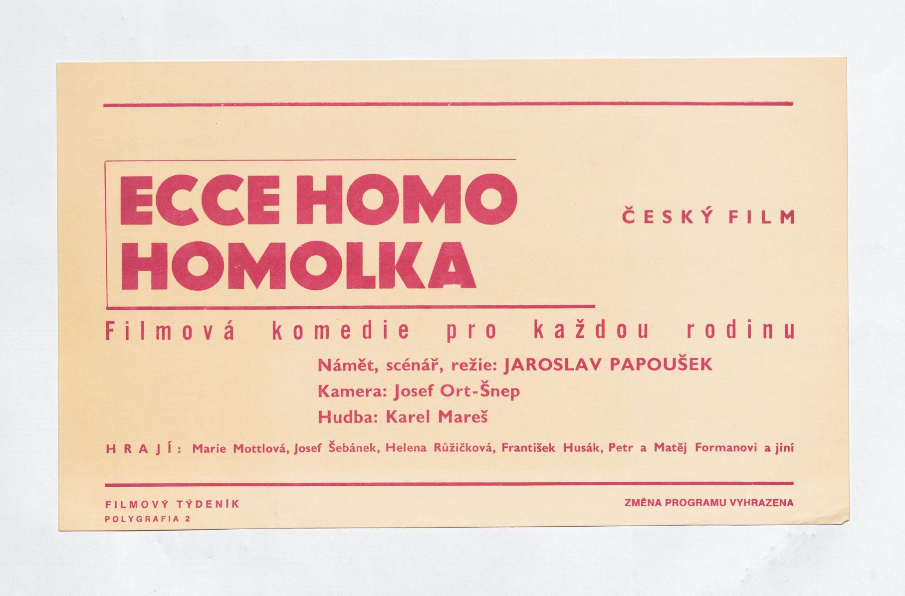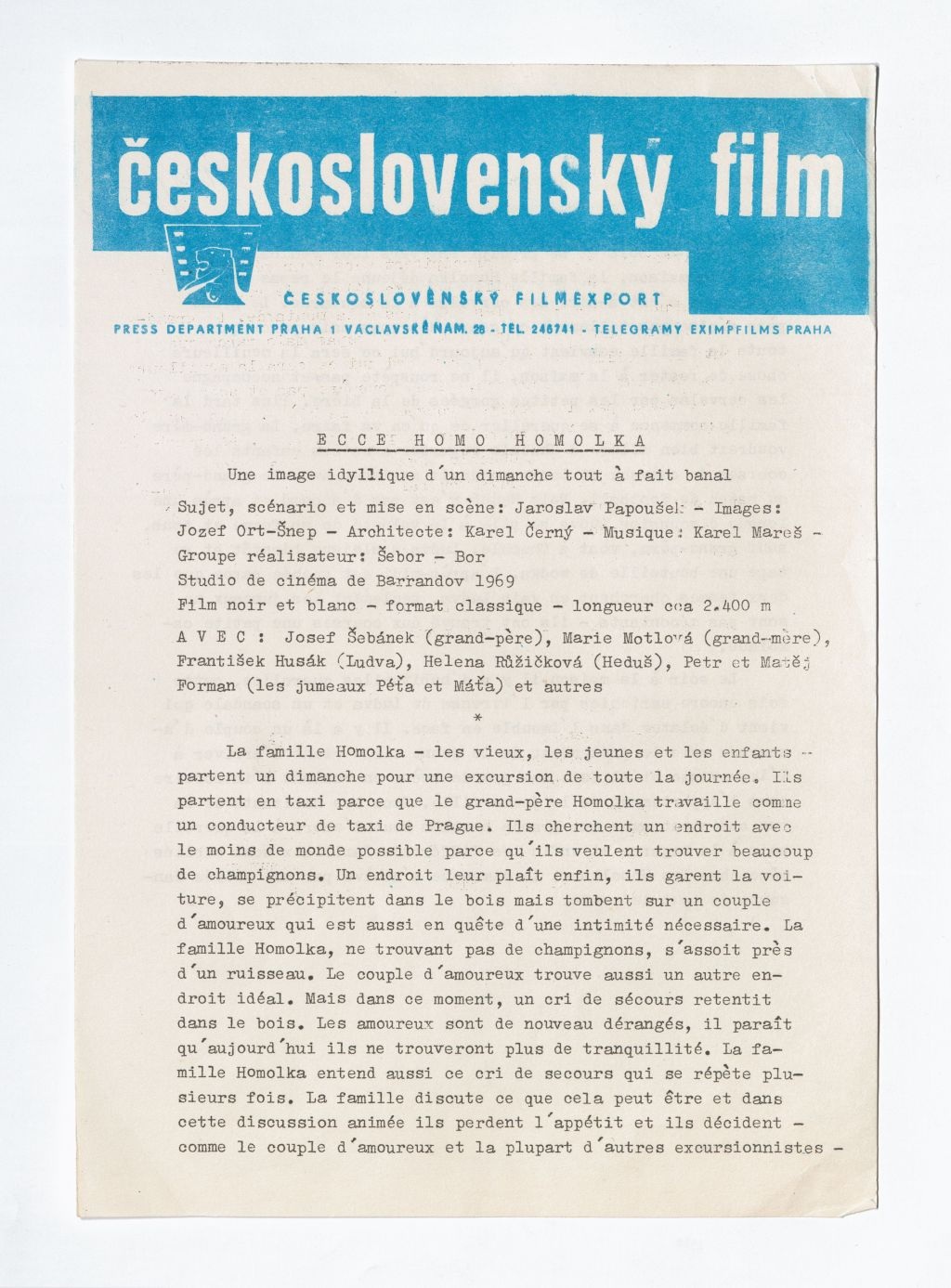Odchod Miloše Formana a Ivana Passera do zahraničí znamenal konec autorského triumvirátu, který zrodil některé nejoceňovanější tituly československé nové vlny. Posledním společným projektem, na němž se Forman podílel jako režisér a spolu s Passerem a Jaroslavem Papouškem i jako spoluscenárista, se stala hořká komedie Hoří, má panenko (1967). V únoru 1969 uvedl Papoušek do kin svůj samostatný režijní projekt Nejkrásnější věk. Jízlivý pohled do sochařského ateliéru AVU představoval esenci novovlnného figurkaření. Na autentičnosti mu dodal i kameraman Jozef Ort-Šnep, který se do té doby věnoval dokumentu (na svém kontě měl tehdy především snímky Moravská Hellas a Spřízněni volbou Karla Vachka). Papoušek s Ort-Šnepem pak podle vlastního námětu a scénáře realizoval tragikomedii Ecce homo Homolka, která si premiéru odbyla v březnu 1970 – v době, kdy navzdory sílícím normalizačním tendencím v kinech ještě dobíhaly tituly, jež byly dány do výroby ještě ve „svobodné“ éře Barrandova. Papoušek na film navázal komediemi Hogo fogo Homolka (1970) a Homolka a tobolka (1972). V souladu se vzrůstajícími tlaky ze strany barrandovské dramaturgie je kvalita trilogie sestupná, první homolkovský příběh se ovšem dokonce dočkal ocenění v zahraničí: na MFF v San Sebastiánu 1970 získal Zlatou mušli pro nejlepší film.