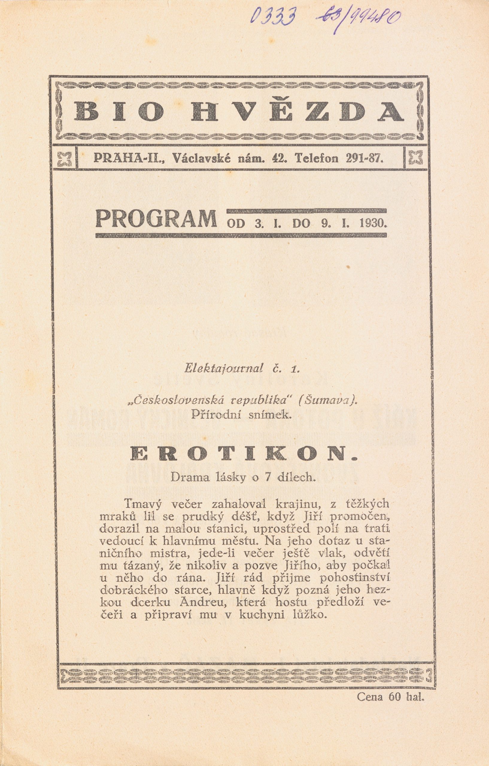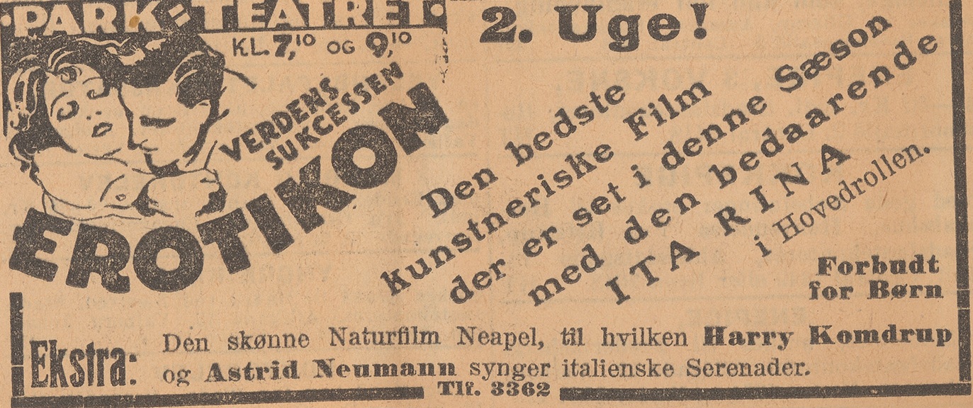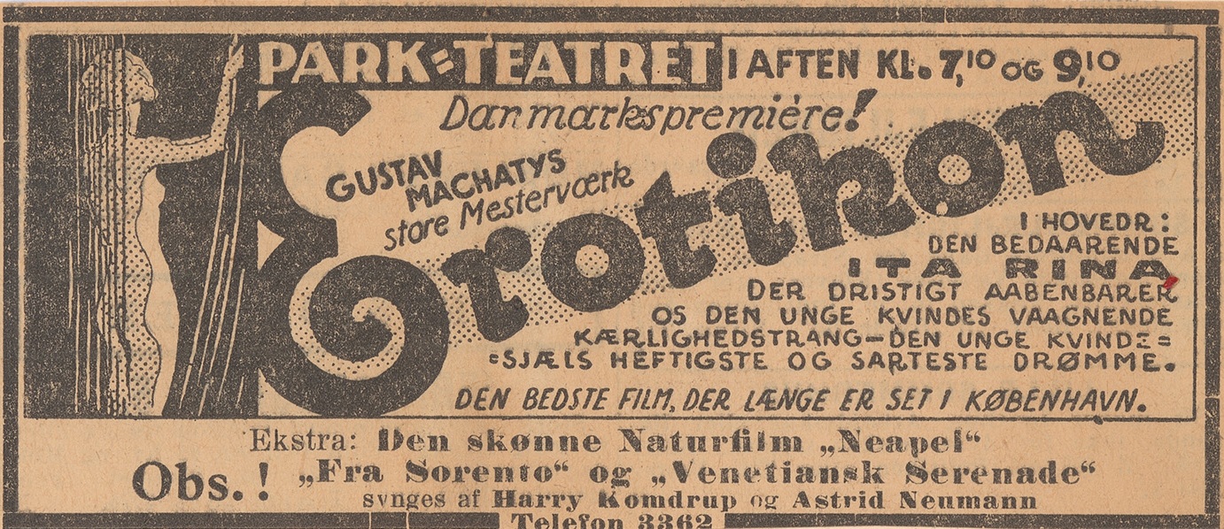 Nový film mladého režiséra Gustava Machatého měl dvě předpremiéry v únoru 1929, a to nejprve v Karlových Varech a poté v Praze. V obou případech se jednalo o uzavřené projekce pro zvané, jichž se zúčastnili někteří tvůrci, novináři a další osobnosti veřejného života. Obě předpremiéry vyprovokovaly vlnu příznivých ohlasů, které vyšly jak v česky, tak v německy psaných periodikách. Přes úspěch těchto akcí se distribuční společnost Slaviafilm rozhodla uvedení filmu o pár měsíců odložit a oficiální premiéra snímku proběhla až v lednu 1930, tentokrát již bez většího zájmu médií a v nešťastně zvolený okamžik, kdy většina potencionálních diváků prožívala vlnu euforie z technické novinky zvukového filmu. Pod vlivem nástupu zvuku byl snímek v roce 1933 znovu uveden do kin v kratší a dle soudobých ohlasů (če, Synchronizovaný Erotikou. Lidové noviny 8. 12. 1933, č. 615, s. 14) nepříliš kvalitně ozvučené české a německé verzi.